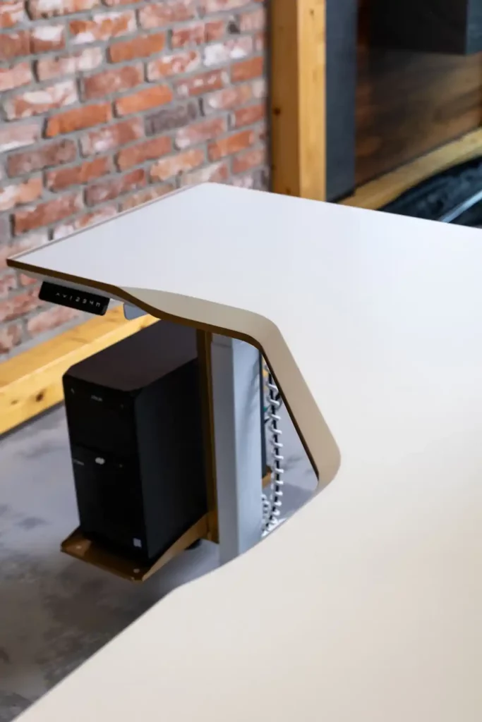Masz wybór miejsca przepustu kablowego ! może być on po lewej prawej lub obu stronach. Jeśli twoje biurko będzie służyć do innych prac niż na komputerze – przepustu w ogóle nie musi być .